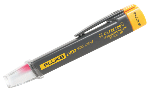 Non-contact AC voltage detector and LED flashlight combined into one easy to use pen-style design. The LVD2 is a CAT IV 600 V rated non-contact detector that is suitable for commercial and industrial applications. The LVD2 includes dual sensitivity turning blue 1” to 5” (2.54 cm to 12.7 cm) from the source and red when at the source.