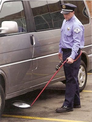 BSD0002-Under Vehicles Inspection Mirror with torchlight - High Quality Original from USA. Hard to come by products. Equipped with adjustable swivel for infinite adjustment Has a heavy-duty extruded rubber rim to prevent damaging objects when maneuvering Lightweight with a 51" handle Low 3.5" ground clearance Metal Scanners/Locators