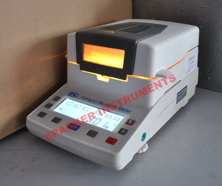 Infrared Moisture Goniophotometer is a new type of high-speed infrared moisture test instrument and can be used to measure the moisture of any material. (Except the substances which generate dangerous chemical reaction through heating) The instrument is designed in accordance with the thermogravimetric principle. While the instrument measures the weight of samples, infrared heating units and water evaporation channels dries samples rapidly too. In the drying process, instrument measures continually and displays immediately the lost moisture (%) of the samples in the process. When the drying is completed, the finally measured moisture is locked. Press the display button, data such as the moisture value, the starting value of the weight, the initial value and measuring time can be observed. Compared with the traditional oven heating method, infrared heating can achieve maximum heating power in the shortest possible time because that the samples are dried rapidly in high temperature can greatly accelerate the measurement time. The instrument is applicable to all the fields which need rapid moisture measurement such as medicine, grain, tobacco, chemicals, tea, foods, textiles, agriculture and forestry, etc. This instrument is able to communicate with computer. Measuring data of moisture can be printed out though the computer or directly by the printer matched. Features: