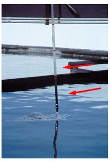 2. When the sludge sampler has been raised clear of the liquid, the amount of solids in the sample can be read using the 1 ft., 0.31 m increments marked on the pipe sections.