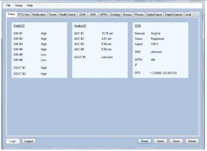 Specification Model : RTU202 Inputs and Outputs Power Input 7VDC to 28VDC, 10mA in Full active (GSM inactive) External Serial Interface RS232C or RS485 for Sensor or Meter Interfacing such as SG-24 24 Bottle Auto Sampler, Energy Meter, Level Sensors, Water Quality sensors, Weather Sensors, Flow Transmitter, Gas Transmitter, Analyzers. Dimension:
