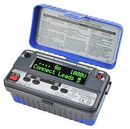 High Contrast OLED display. ● Designed for viewing in the dark, for mining industry. ● Auto-range microprocessor-controlled. ● Automatic voltmeter AC/DC at Start/Reset. ● Battery test at switch ON/Reset. ● Safety voltmeter before each test. ● Auto-discharge on all tests and all ranges. ● Leads auto-null key. ● Test auto-stop. ● Smart hold and stop on voltmeter AC/DC. ● Ener-Save. ● Continuity short circuit >220mA. ● Continuity open circuit voltage of 5Vdc. ● Nominal voltage @ 1mA on all insulation ranges. ● Polarization index (PI). ● Dielectric Absorption Ration (DAR). ● BS 16 edition.