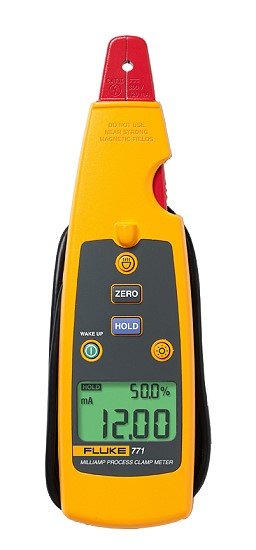 The Fluke 771 Milliamp Process Clamp Meters measure 4-20 mA signals without breaking the loop with this new, compact clamp meter for PLC and control systems analog I/O. The detachable clamp with extension cable allows you to take measurements in tight locations, and the built-in spot light illuminates hard to see wires in dark enclosures.