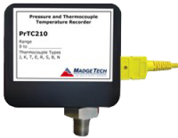 The PRTC210 is a pressure and thermocouple temperature data logger, ideal for use in factory settings. The device is available from 30 to 5000 PSI and features a 1/8” NPT fitting for quick connection.