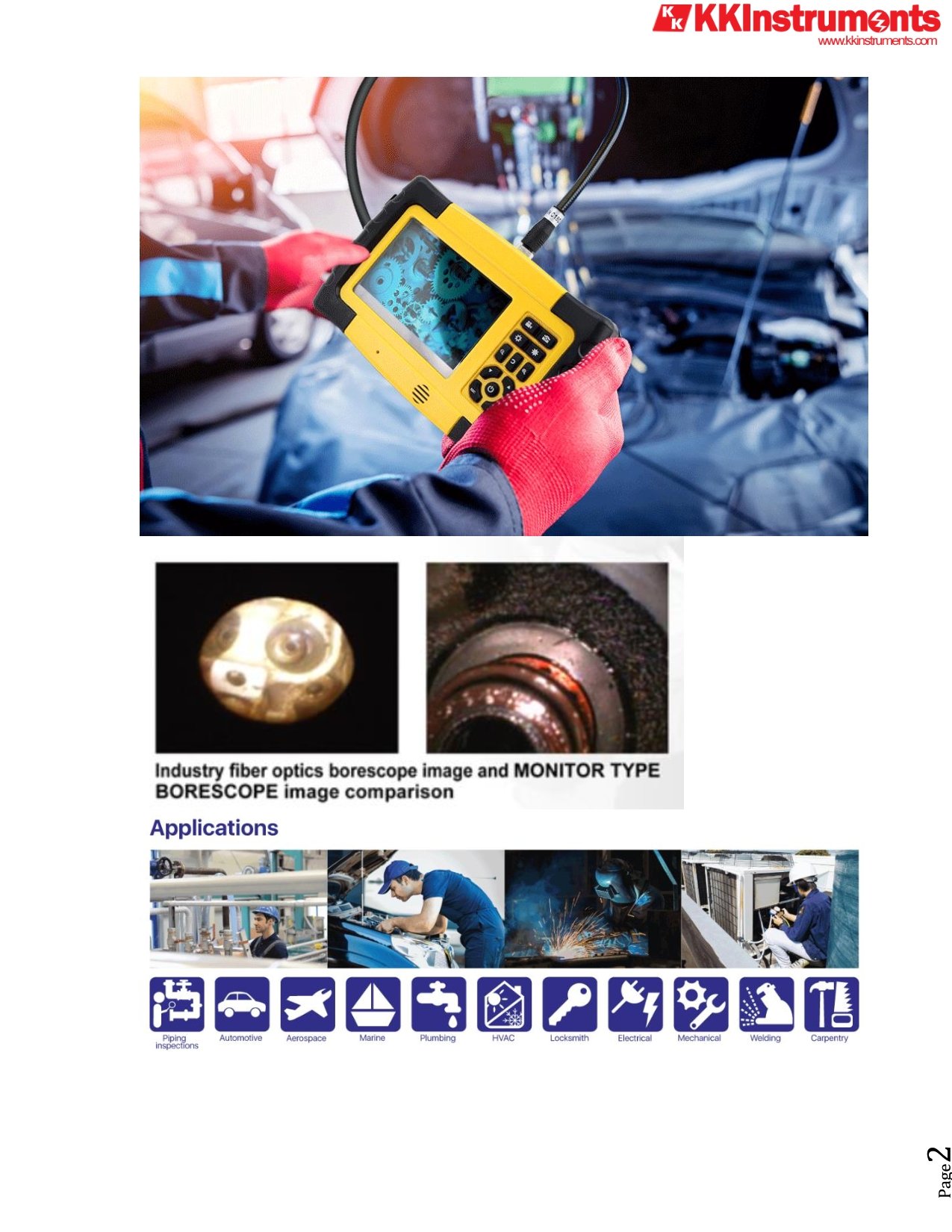 Snapshot, Video recording, Audio recording, Picture & video review on LCD screen, TV out, transfer of picture & video from SD card to PC, Digital Zoom, Recording, Wireless Inspection System.