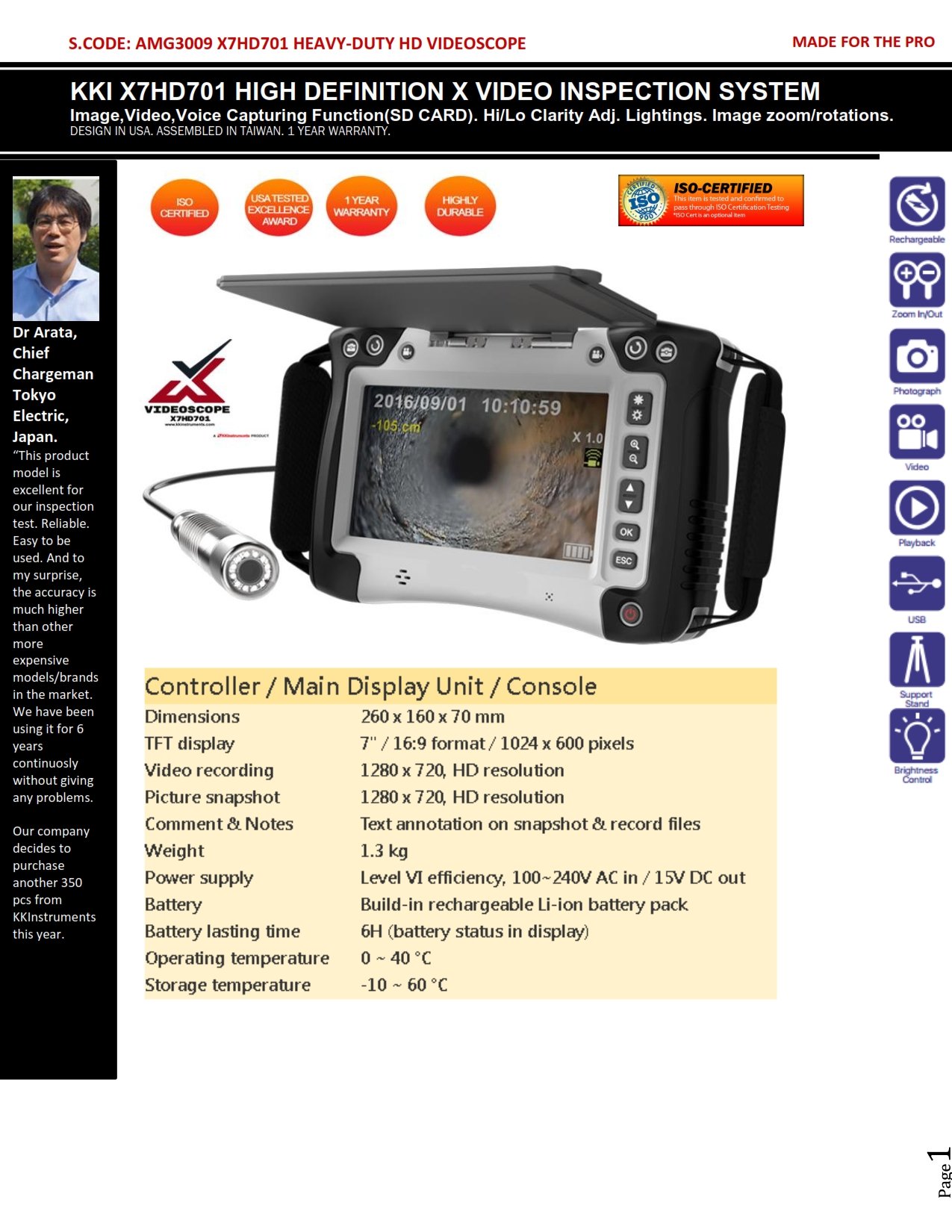 X7HD701 HD VIDEOSCOPE (AMG3009)