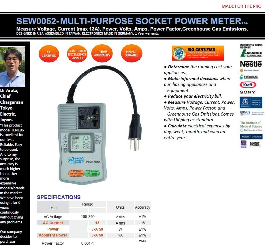 Featured item SEW0052- MULTI-PURPOSE SOCKET POWER METER( voltage, current, frequency, watt, power factor)
