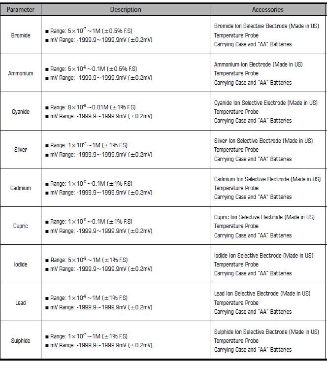 Ion Concentration Accuracy ±0.5% Full Scale
