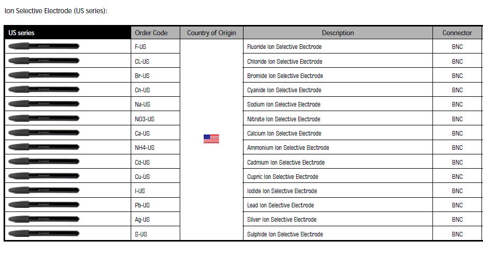 | Calibration Solutions | 0.001, 0.01, 0.1, 1, 10, 100, 1000, 10000ppm, mol/L, mg/L | |||