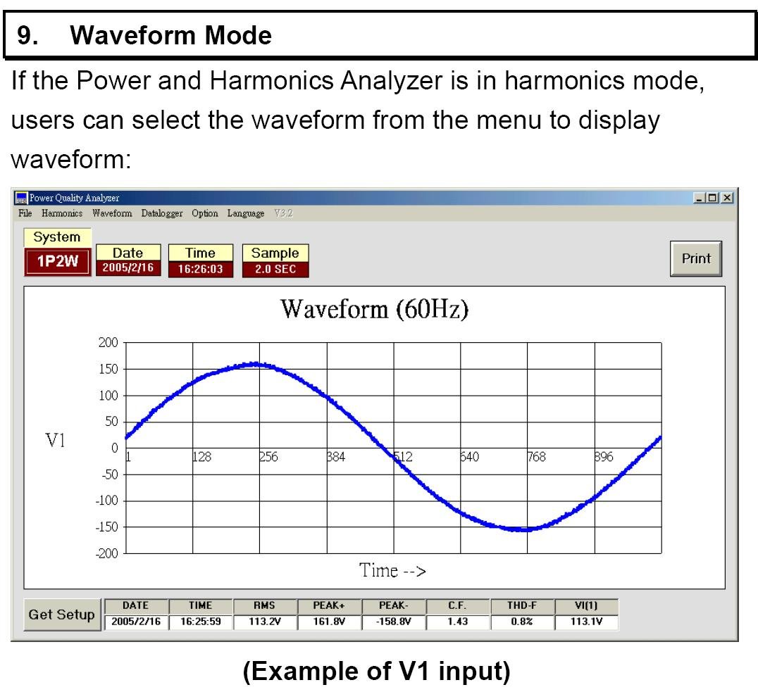 | Harmonics of AC Voltage in % and in Magnitude (1 to 99th order, minimum voltage at the 50 or 60 Hz>AC 80V) |