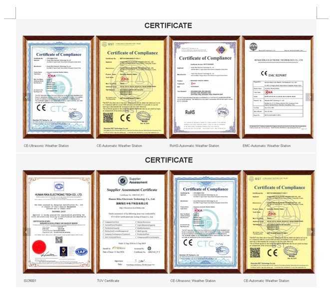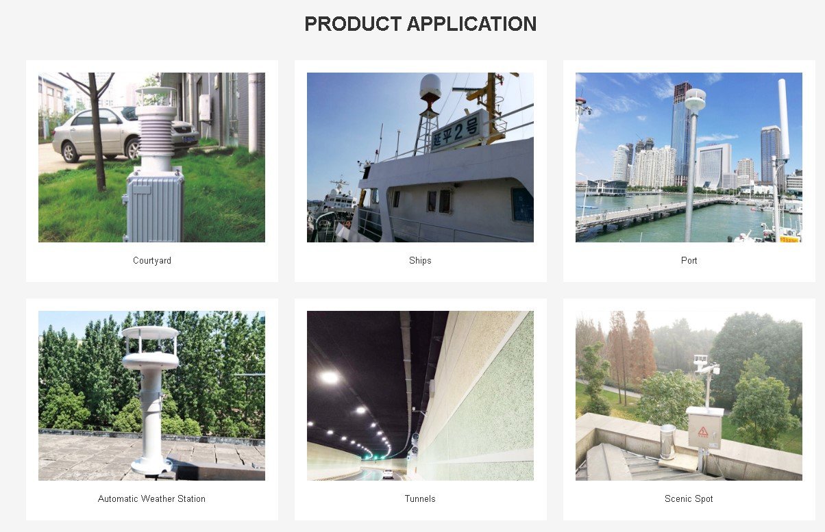 This automatic weather instrument is simultaneously measure the atmospheric temperature, atmospheric humidity,air pressure,wind speed, wind direction, solar radiation,Illuminance/UV, dust concentration and precipitation. Temperature, humidity and air pressure sensor is placed within the radiation shield. Wind speed and direction of ultrasonic rinciple. 24G radar detection on rainfall, which can quickly detect rainfall and rainfall intensity. Internal GPS global positioning module and electronic compass can be mounted to the system to give a good indication of latitude and longitude and relative speed, which can calculate the real and virtual wind speed and direction, and is especially suitable for installation on motion vector, such as special vehicles or vessels, etc.